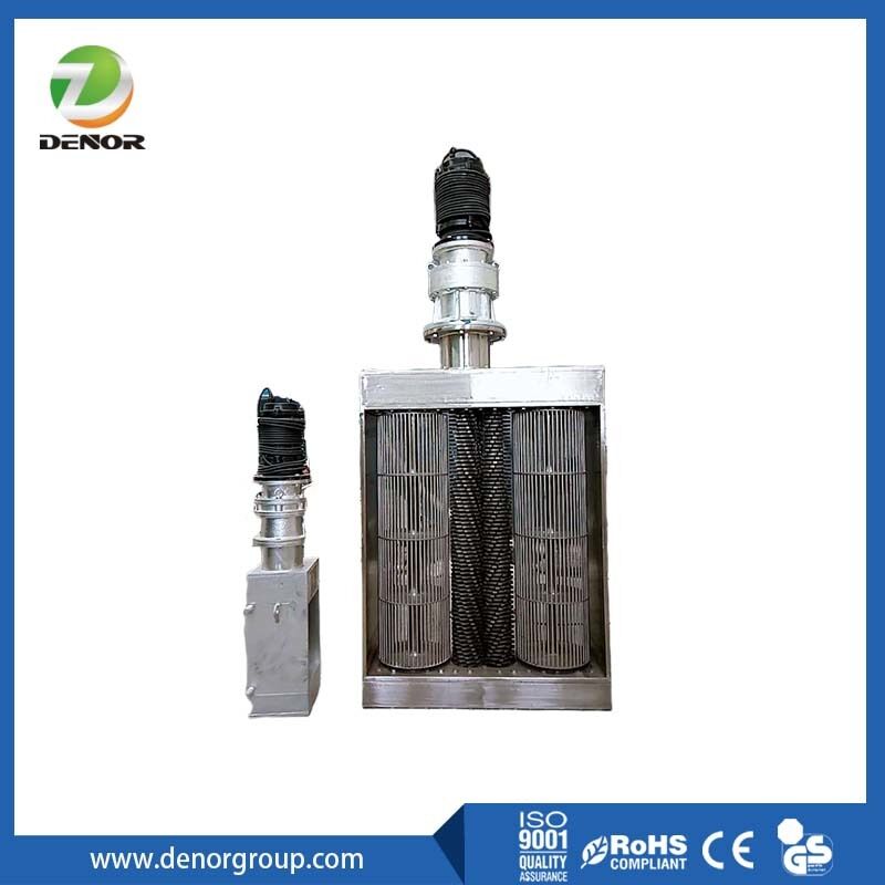 DENOR's vrije trommelkanaaltype breekrooster is geschikt voor kleine kanalen en kleine waterinlaten. Denor dubbele trommelkanaaltype breekrooster geschikt voor grote kanalen, dubbele trommelontwerp, grotere doorstroming.